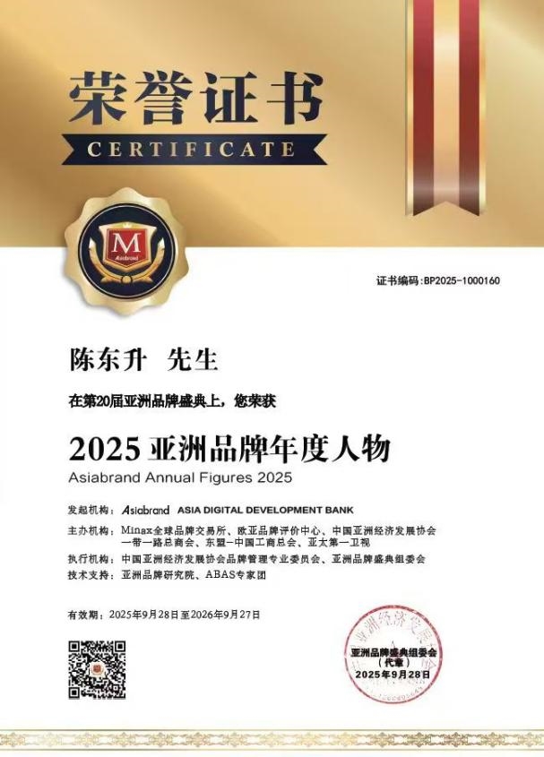 同时泰康保险集团创始人、董事长兼CEO陈东升荣膺“2025亚洲品牌年度人物”荣誉称号,泰康之家荣获“2025亚洲十大影响力品牌”,泰康健康财富规划师(HWP)荣获“2025中国(行业)十大影响力品牌”。